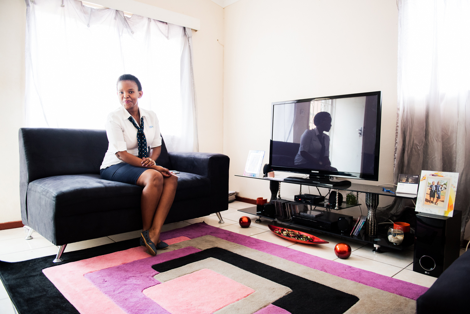 ”Lönen är för låg med tanke på min universitetsutbildning”, tycker Montlatsi Masike, 29 år, som jobbar på Standard Chartered Bank i Lobatse, några mil söder om huvudstaden Gaborone. Här hemma i soffan i det lilla hus hon bor i med sin dotter.