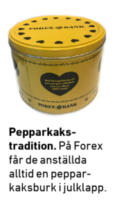 På familjeägda Forex Bank med 1 000 anställda i Norden håller man fast vid sin tradition – här ger man en gul pepparkaksburk till sina anställda. Det är en tradition som har funnits lika länge som företaget.