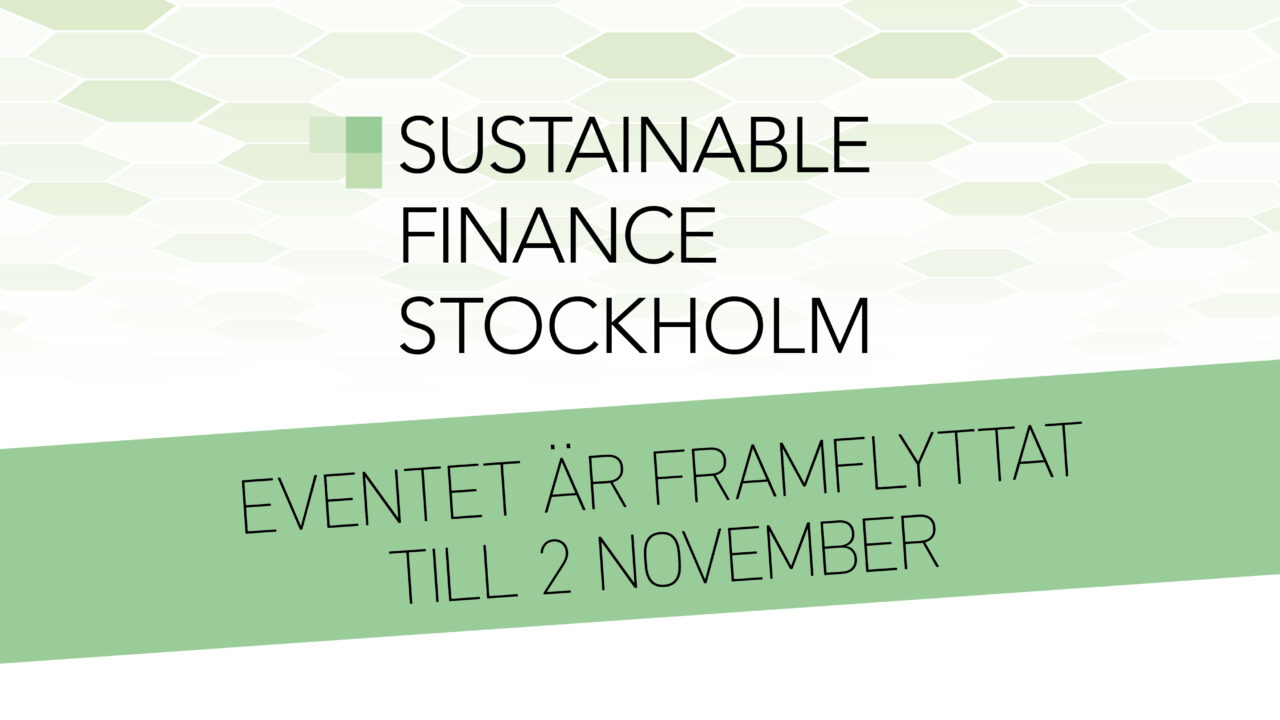 Finanslivs hållbarhetsevent Sustainable Finance Stockholm som skulle ha hållits den 20 april, skjuts upp och genomförs i stället i höst.