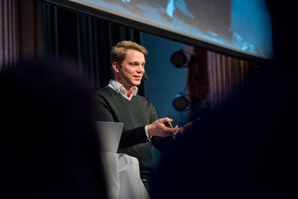 Aage Reerslev från Wrapp presenterade appen som genom att använda konsumenternas korttransaktioner kan skapa skräddarsydda erbjudanden från butiker och andra leverantörer.