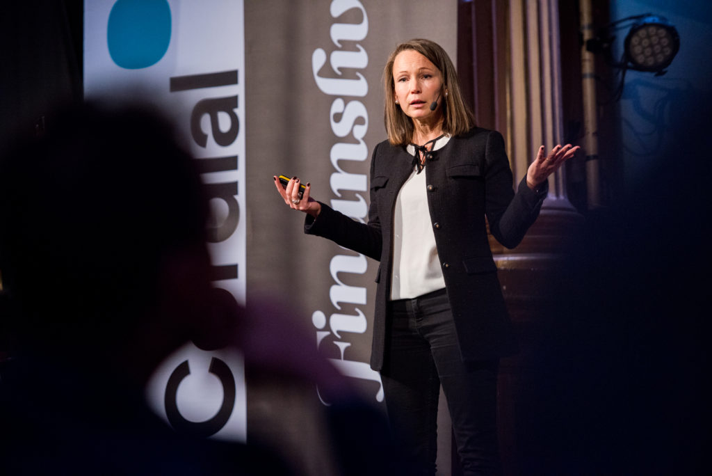 Ann Grevelius talade om framtidens kapitalförvaltning och den digitala rådgivningstjänsten Opti där hon är styrelseledamot. I appen går det i dag att jämföra sina fonder och få hjälp att byta till bättre alternativ. På sikt ska tjänsten utvecklas mot mer komplett digital portföljförvaltning.